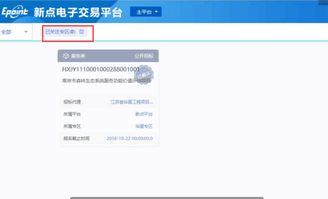 关注专区:供应商登录系统后,在报名前需要先关注专区