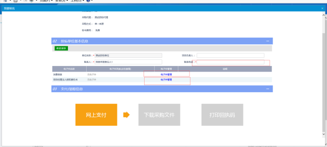 点击“网上支付”,就可以支付招标文件的工本费,弹出“网上支付”页面;