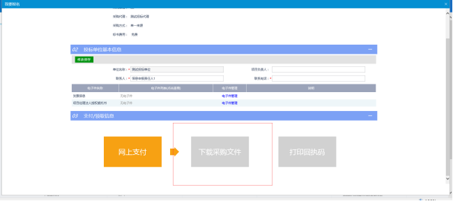 支付完成后,点击“下载招标文件”图标,领取招标文件