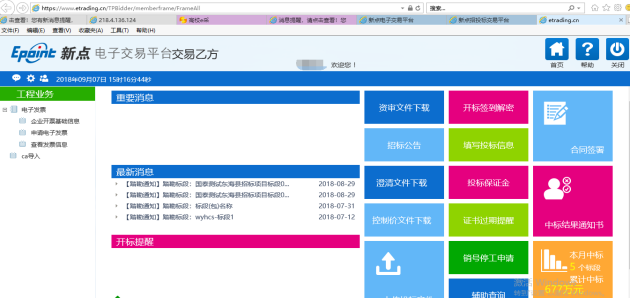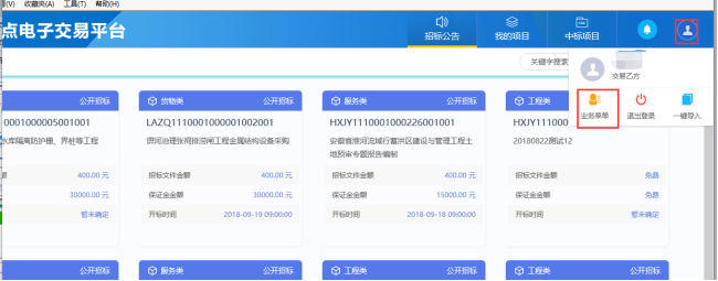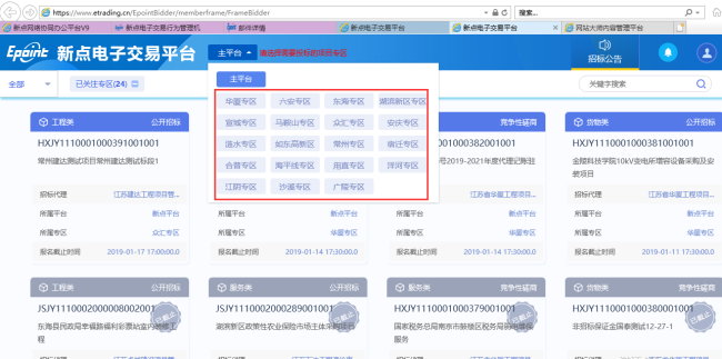 如下图所示,供应商登录系统后,在页面上方选择投标专区(这边选择对应的投标专)区,点击之后,页面会自动刷新。