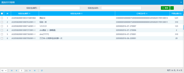 投标人点击 按钮,选择标段进行开票,支持标段的多选。