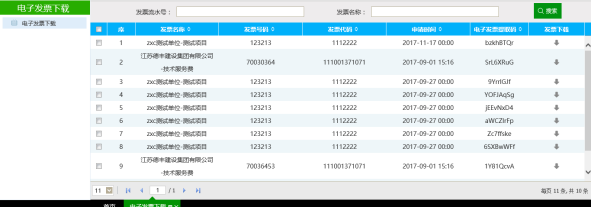 进入系统后,可查看所有已开票信息,如下图所示,点击按钮,即可下载相应的电子发票。