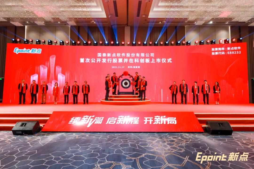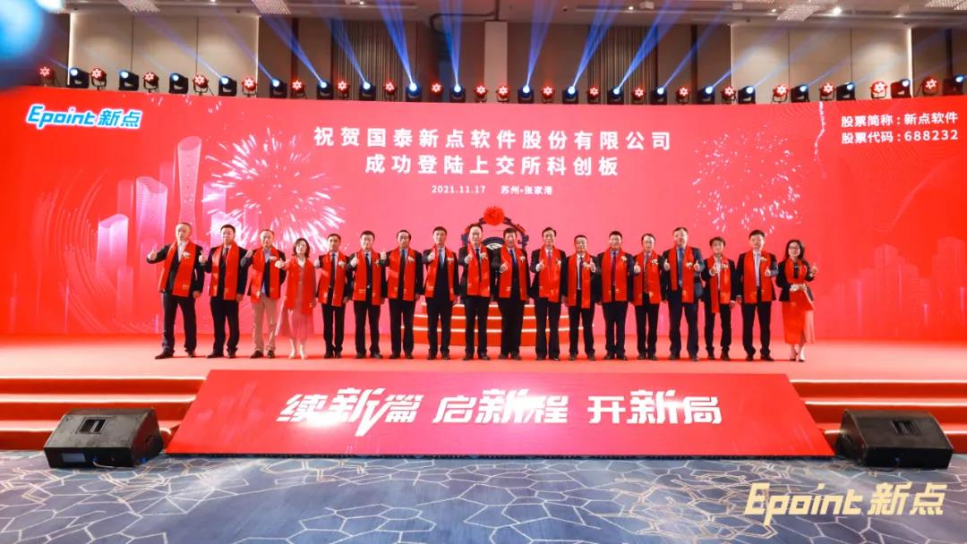 2021年11月17日,国泰新点软件股份有限公司首次公开发行股票并在科创板上市(股票简称:新点软件,股票代码:688232),标志着新点软件跨入全新发展阶段,开启全面助推政企数字化转型新征程。