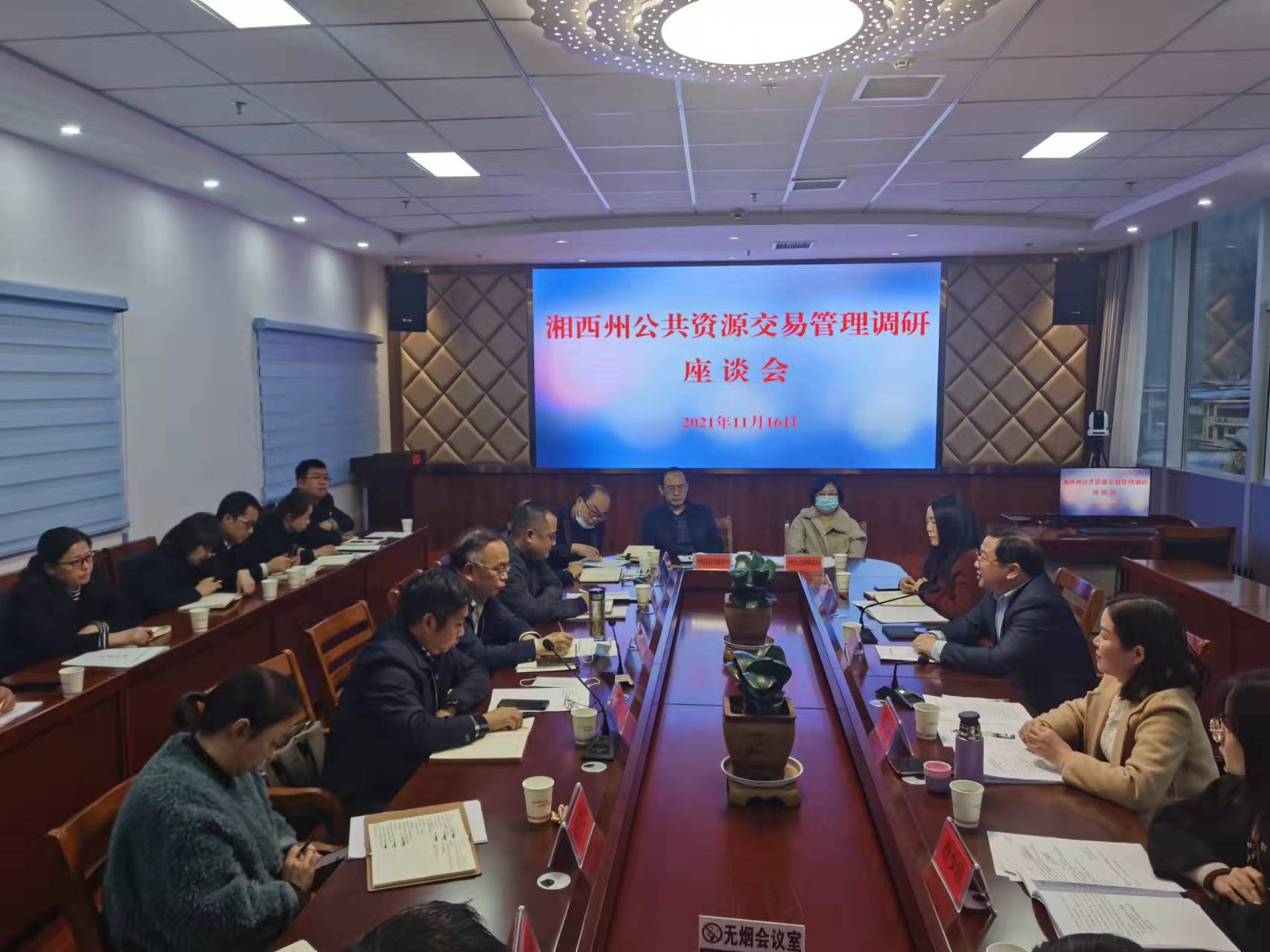 为进一步完善公共资源市场化配置机制,提升公共资源交易服务水平,创新公共资源交易监管体制机制,11月16日下午,省公管办处长谭大为一行来到湘西州调研公共资源交易管理工作。州政府副秘书长、办公室副主任伍程灿陪同调研并主持座谈会。